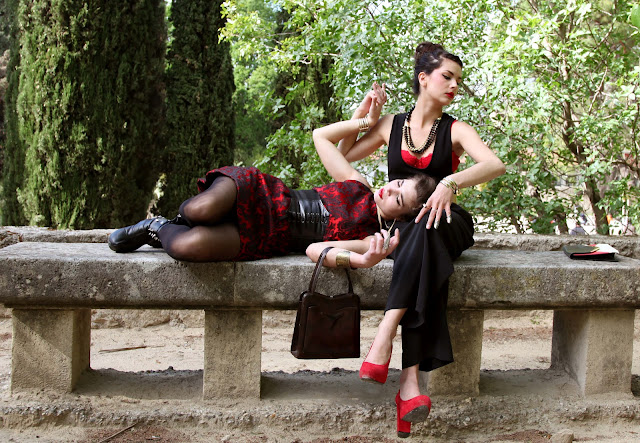 Ce parc aux verts et beiges ternis par l'habitude prit une dimension toute fanatique par ces contrastes rouges et noirs, qui en renouvelait pour moi l’éclat perdu. Je tournais la tête. Les femmes en question se tordaient dans d'étranges poses pour les beaux yeux d'un photographe. Bien sûr, me dis-je. Elles sont trop belles pour n'être que de simples passantes.